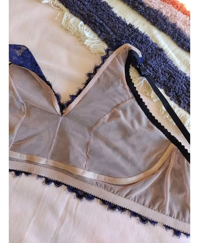 Corpiño en puntilla elastizada ancha y microtul.